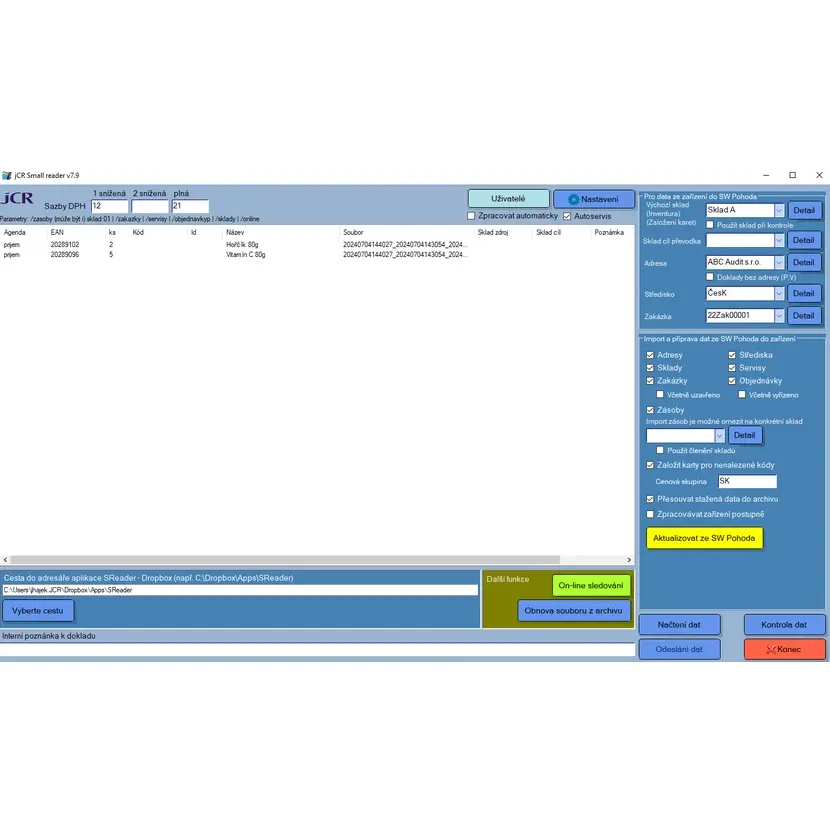 | Kompatibilita | Všechny varianty POHODY se skladovým hospodářstvím, Jazz, Standard, Premium a Komplet, funguje i v řadách POHODA SQL a POHODA E1. U mobilního zařízení je vyžadován OS Android 8 a novější. |